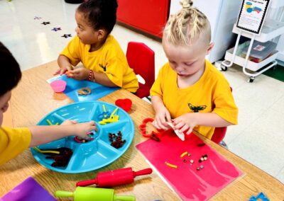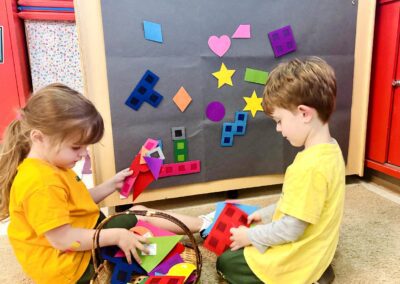 The underlying instructional strategy in early education throughout preschool is the use of organized and free-play activities that are intended to provide opportunities for the child to interact, explore and relate successfully in his/her environment. The preschool program uses multi-sensory hands-on learning approach to teach fine motor skills, auditory and visual learning using center time, books, songs, technology, and art. Free play, story time, show and tell, music, crafts, and outdoor play fill the students’ day.